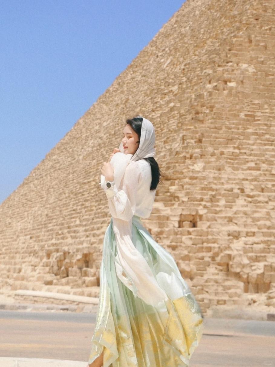 有一次跟同学去埃及玩,一凡特意带上了马面裙。“我穿着马面裙来到金字塔旁边,当时心里想的就是,穿上我们的文化来看你们的文化。”遇到导游或者游客说你的裙子好漂亮,一凡就会跟他们很积极地介绍,有人竟然已经认识这是中国的服饰了。