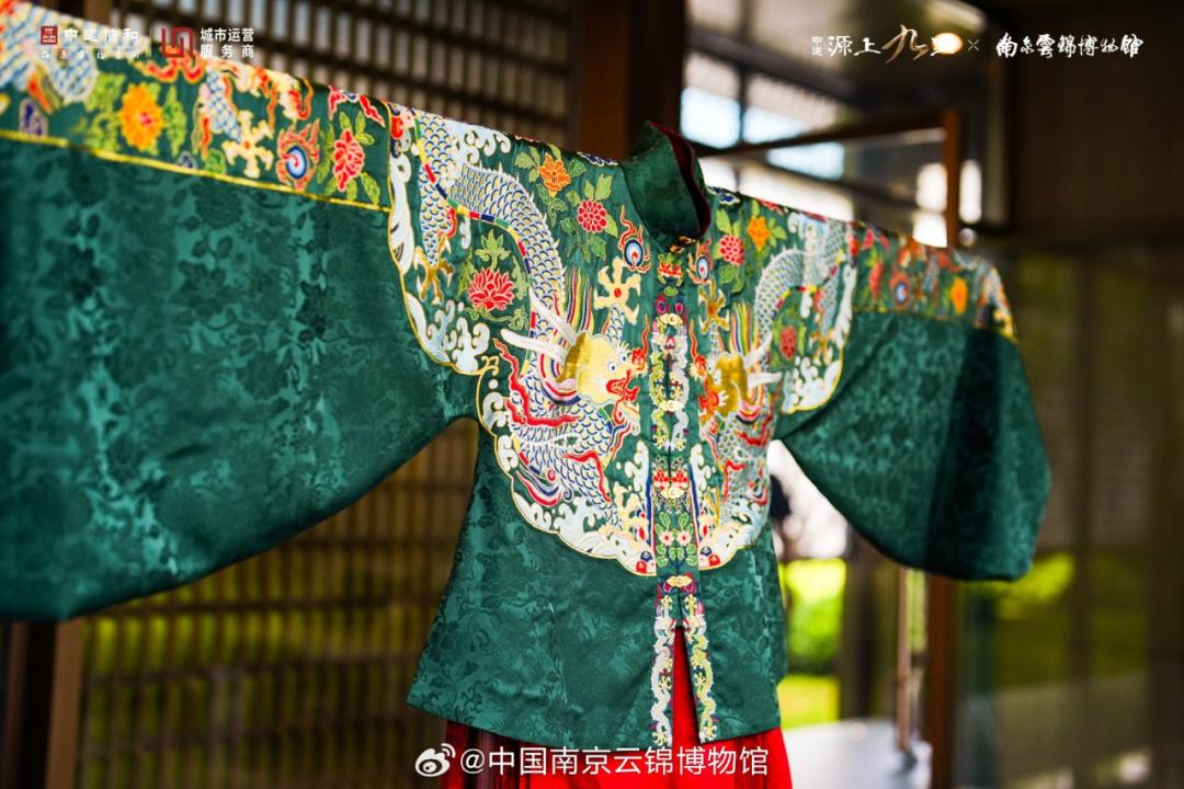 云锦研究所复原的明孝端皇后吉服“绿织金妆花通袖过肩龙柿蒂缎立领女夹衣”