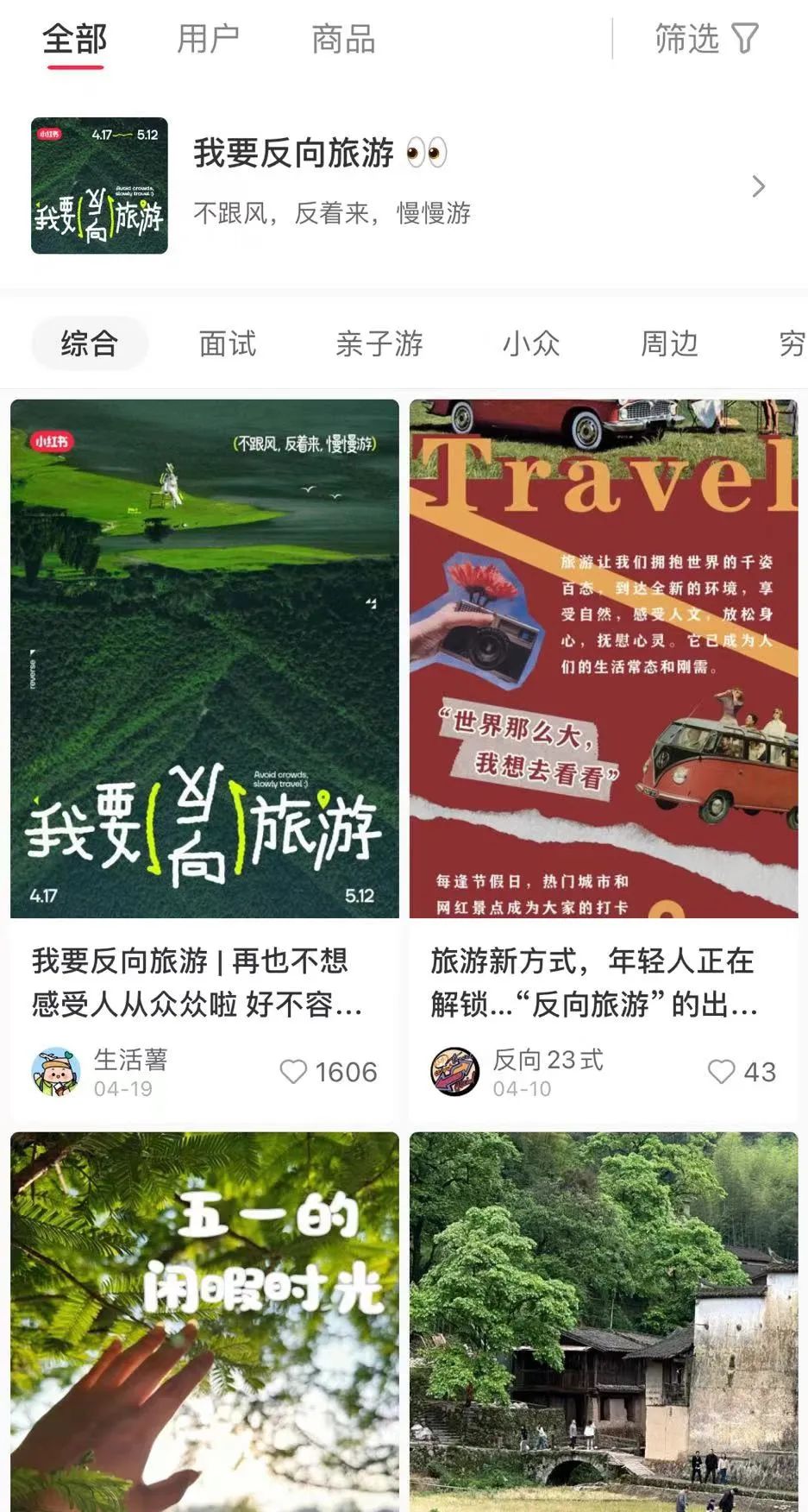 而寻找小众城市旅游的“爆发期”发生在今年的五一期间。4月中旬,小红书上线了#我要反向旅游#的主题活动,号召大家交出自己的冷门宝藏旅游地,来解锁旅行中的松弛感。截止目前,该话题已经有9449.3万次浏览。有用户分享了自己五一假期去的舒心县城——龙游,一句“没人”让不少人瞬间种草,评论区还出现了一众“本地人”为其规划下次再来的旅游路线。