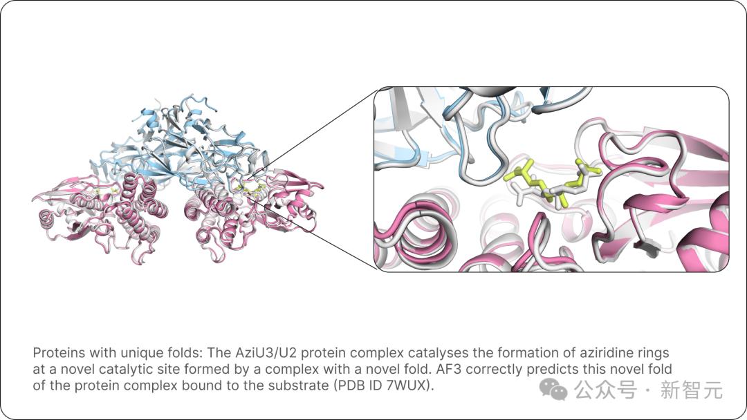 如下三个例子中,展示了AF3如何将许多蛋白质与各自的配体折叠在一起,并阐释了其作用的机制。