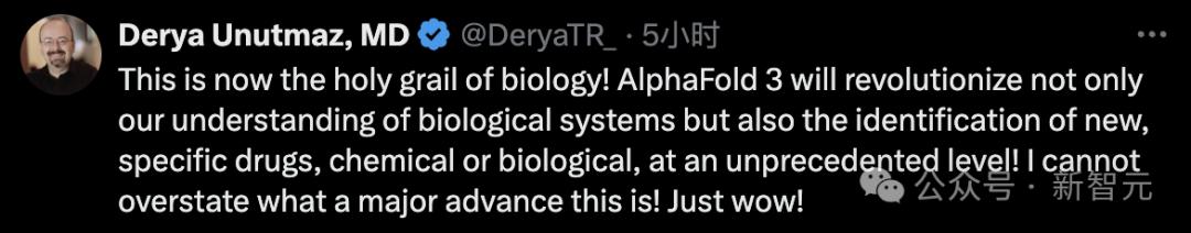 现在,这就是生物学的「圣杯」!AlphaFold 3不仅将彻底改变我们对生物系统的认识,还将以前所未有的水平上确定新的、特异的化学或生物药物!我无法用言语来形容这是一个多么重大的进步!真是叹为观止!