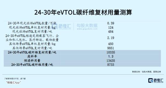 照机构估算,24-30年eVTOL碳纤维需求超过8000吨,平均每年带来1200吨的体量。