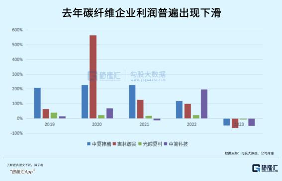 业内产能领先的几家企业业绩遭受重创。中复神鹰归母净利润同比下滑47.45%,吉林碳谷下滑61.72%;光威复材从预浸料到下游碳纤维制品的营收均受到不同程度的下滑。