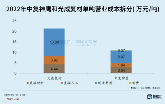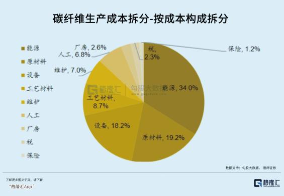 但在中游,制造费用变成了大头。根据中复神鹰成本拆分,以丙烯腈为主的直接材料成本占比约30%,而制造费用占比约50%。