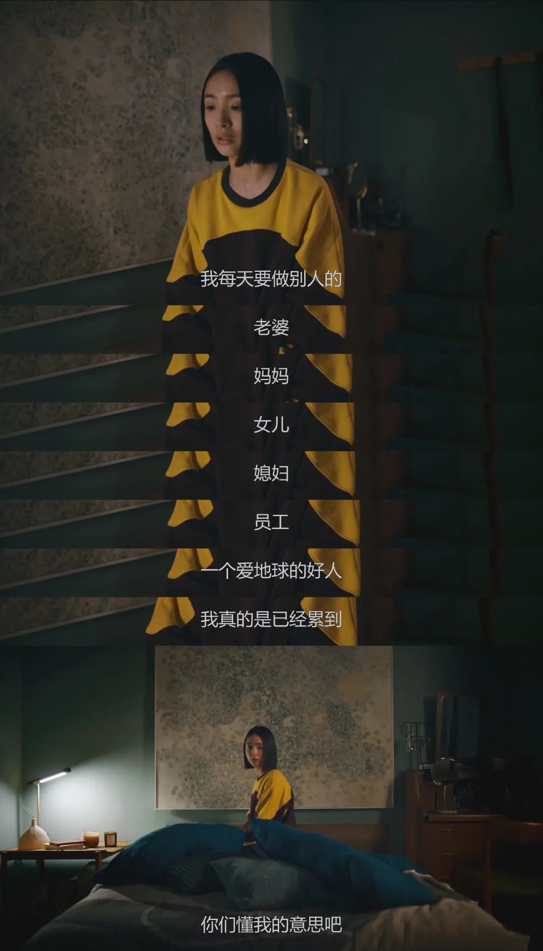 有些凹陷的脸庞,带着深沉的故事感的眼神,由内向外散发出中年女性疲惫感的身体,以及在多年波澜不惊、食之无味的生活下催生出的无奈、不甘、患得患失的情绪,让人物很丝滑地“立”住了。