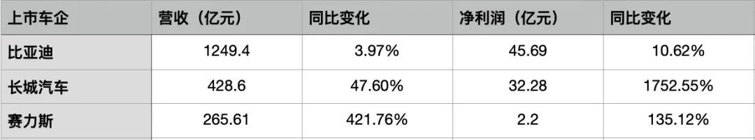 尽管行业中的价格战有愈演愈烈之势,但长城汽车、赛力斯、比亚迪在第一季度仍实现了营收和净利润的双增长。