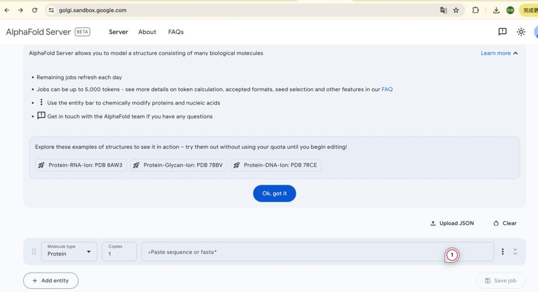 AlphaFold2提供了开源版和colab版本,没有经过封装,可视化效果比较简陋。但是AlphaFold3提供了网页版的AlphaFold server,对于不熟悉代码的使用者非常友好。