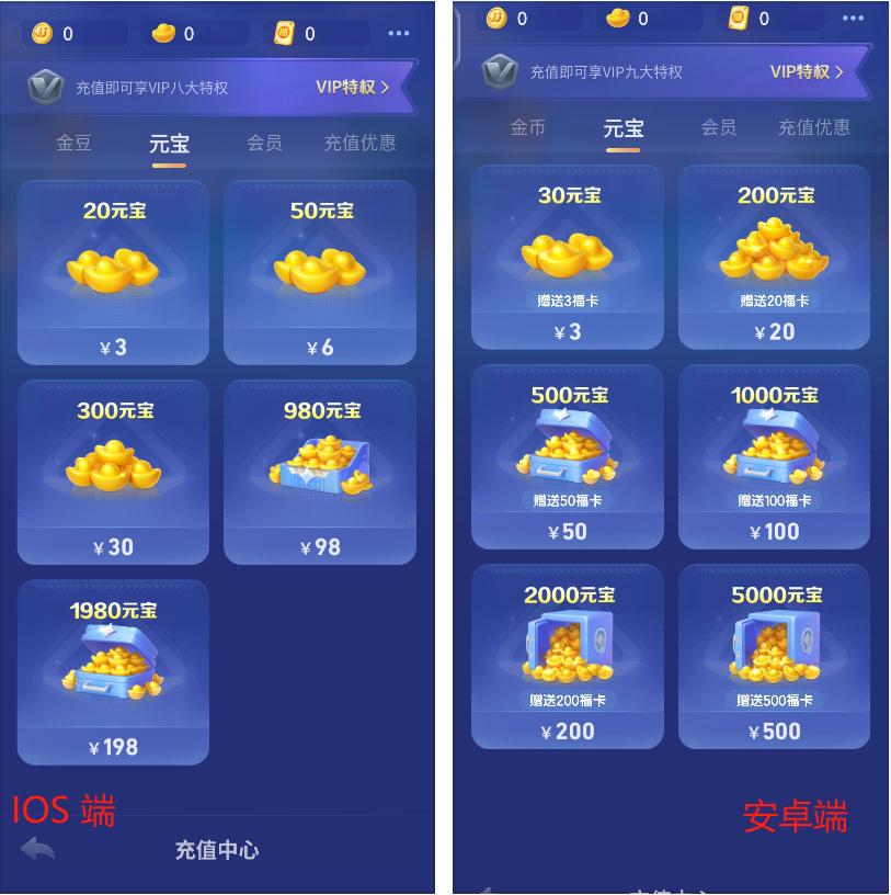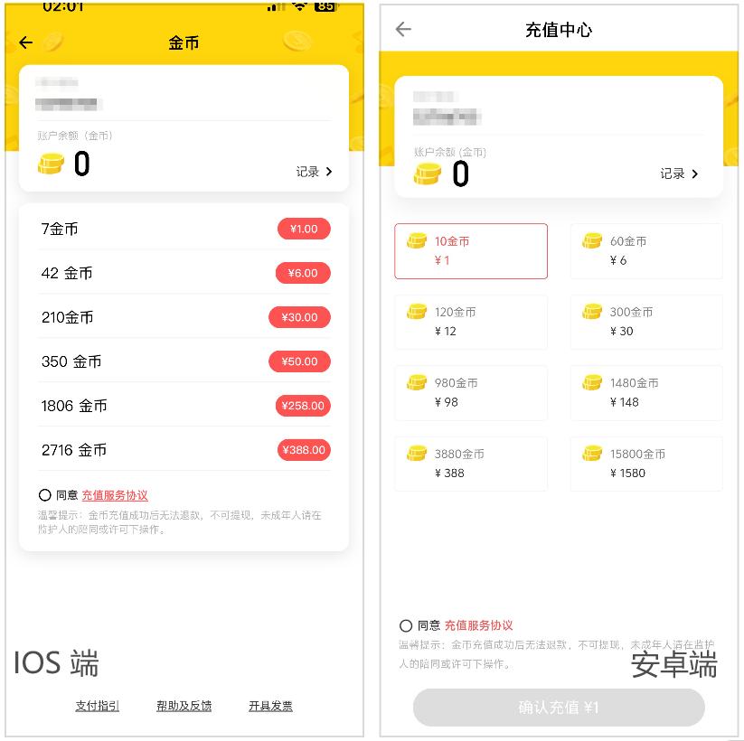 除了 JJ 斗地主充值 3 元时安卓比 iOS 多 50% 的虚拟币。其他无论是腾讯、网易游戏,还是原神,两个平台的价格都能够保持一致。