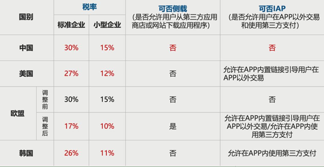 欧盟,出台《数字市场法案》,佣金比例降至 17% ,允许官网或第三方下载,也允许第三方支付。