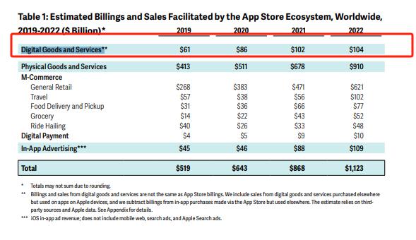 去年 6 月 1 号,苹果官网引用了安诺析思咨询公司发布的一份报告,公告特意指出,2022 年全球开发者获得的数字商品和服务的营收为 1040 亿美元。