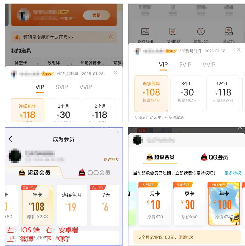 QQ 会员、微博会员一样,iOS 端的会员都要比安卓端贵个 8 块 10 块。