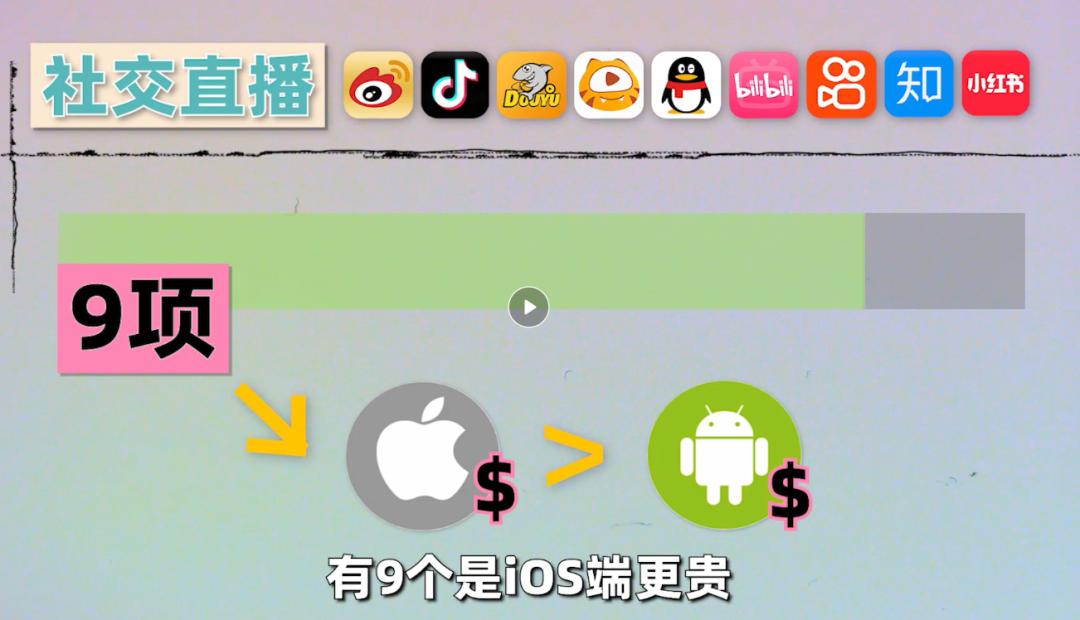 总的下来,这 9 个 App 的 10 项付费服务里,有 9 个是 iOS 更贵,这有点出乎我的意料。