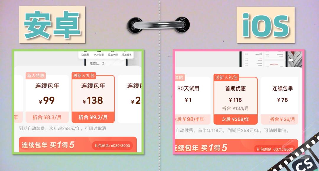 但可能大部分人不会注意到,相同的服务,iOS 和安卓两个平台有可能价格不一样。