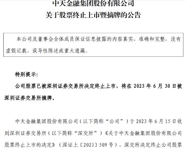官网资料显示,中天金融旗下曾有员工近20000人,是贵州省内规模大、综合实力强的民营企业之一,拥有壹级房地产开发资质。但在资本市场沉浮29年后,中天金融最终黯然离场,于2023年6月底摘牌退市。截至2023年末,其还拥有员工3800余人。