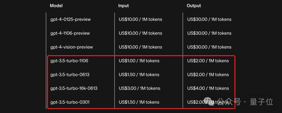 换算一下,就是1元=1000000tokens;而同样是百万tokens,ChatGPT的价格是这样的: