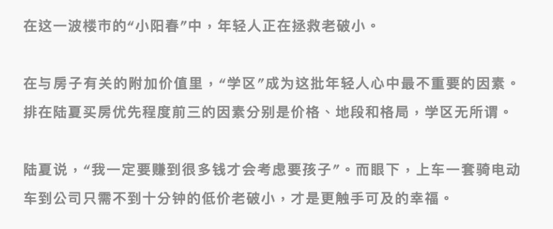 所以,在新房口碑降低的反衬之下,“老破小”的价值正在被重估。