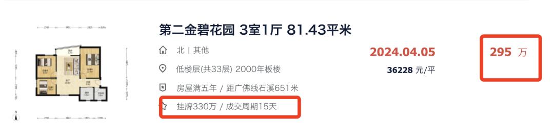 再比如,位于海珠西的金碧花园,一套房源的楼龄达到24年,成交周期仅为15天。