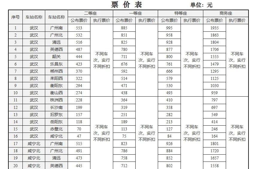 中国铁路12306:《武广调价公告》部分截图