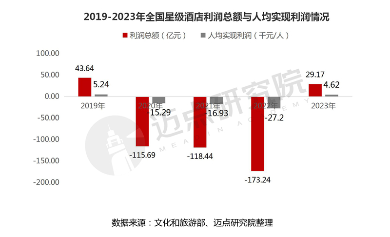 二、全国星级酒店经营情况:营业收入1608.95亿元,恢复至2019年的八成,利润总额29.17亿元,扭亏为盈