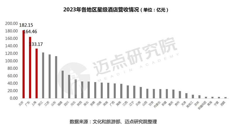 2023年全国32个省市地区星级酒店分布及具体经营情况表现如下: