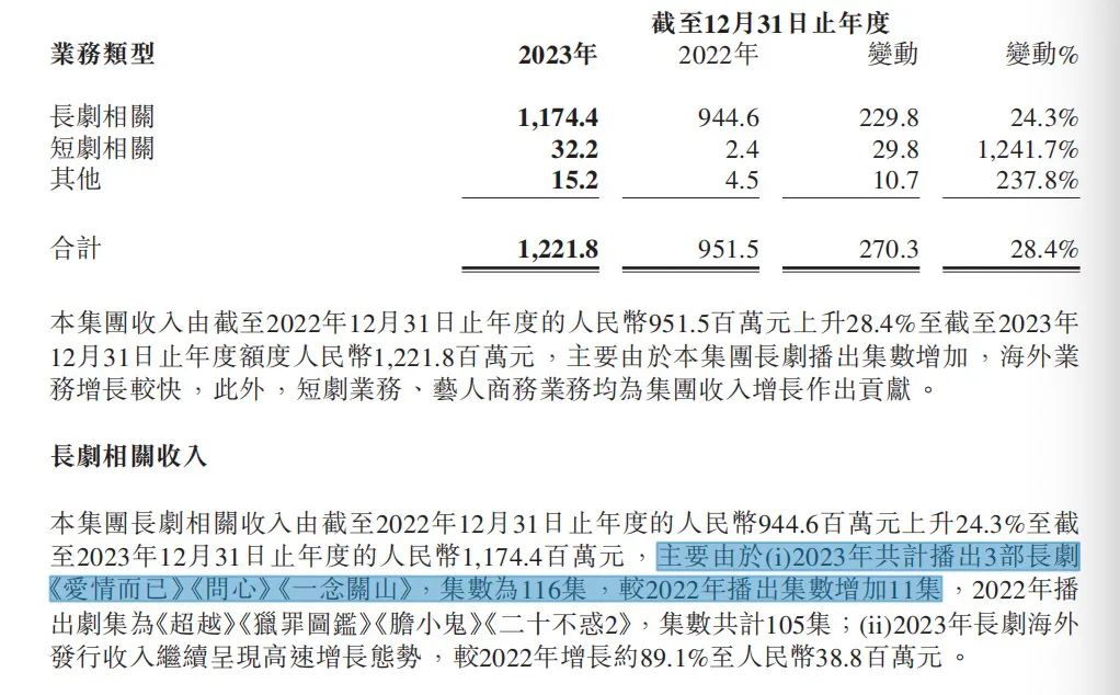 因为柠萌仅靠三部剧,就快赶上了华策五部剧的收入。柠萌2023年财报显示,长剧就播出了《爱情而已》《问心》《一念关山》三部,总计收入11.7亿。