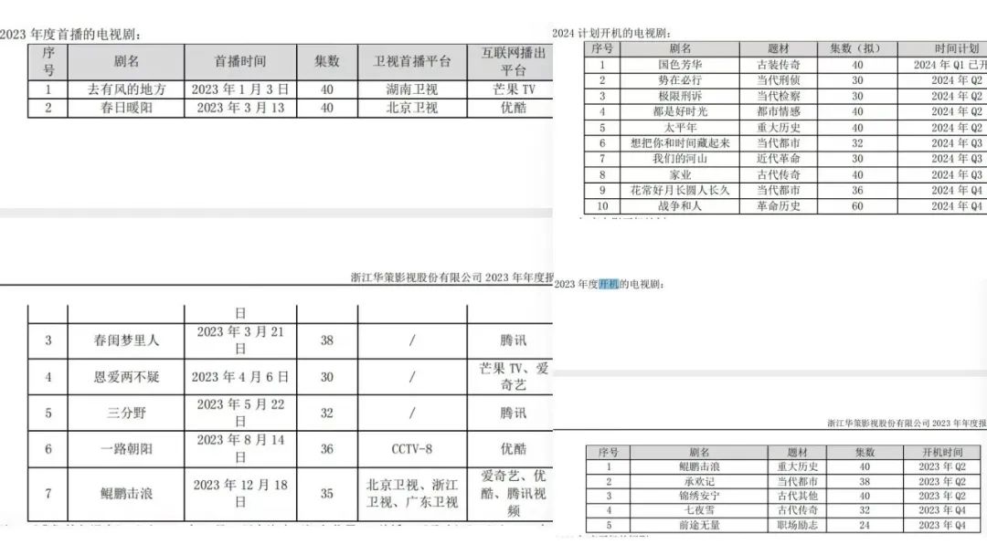 净利润之差源于两家的内容策略。华策是有名的量产公司,剧集产量一直处于高位。2023年华策一共播出7部剧,相比2022年少了3部。但开机数量与2022年持平,均开机了5部剧。