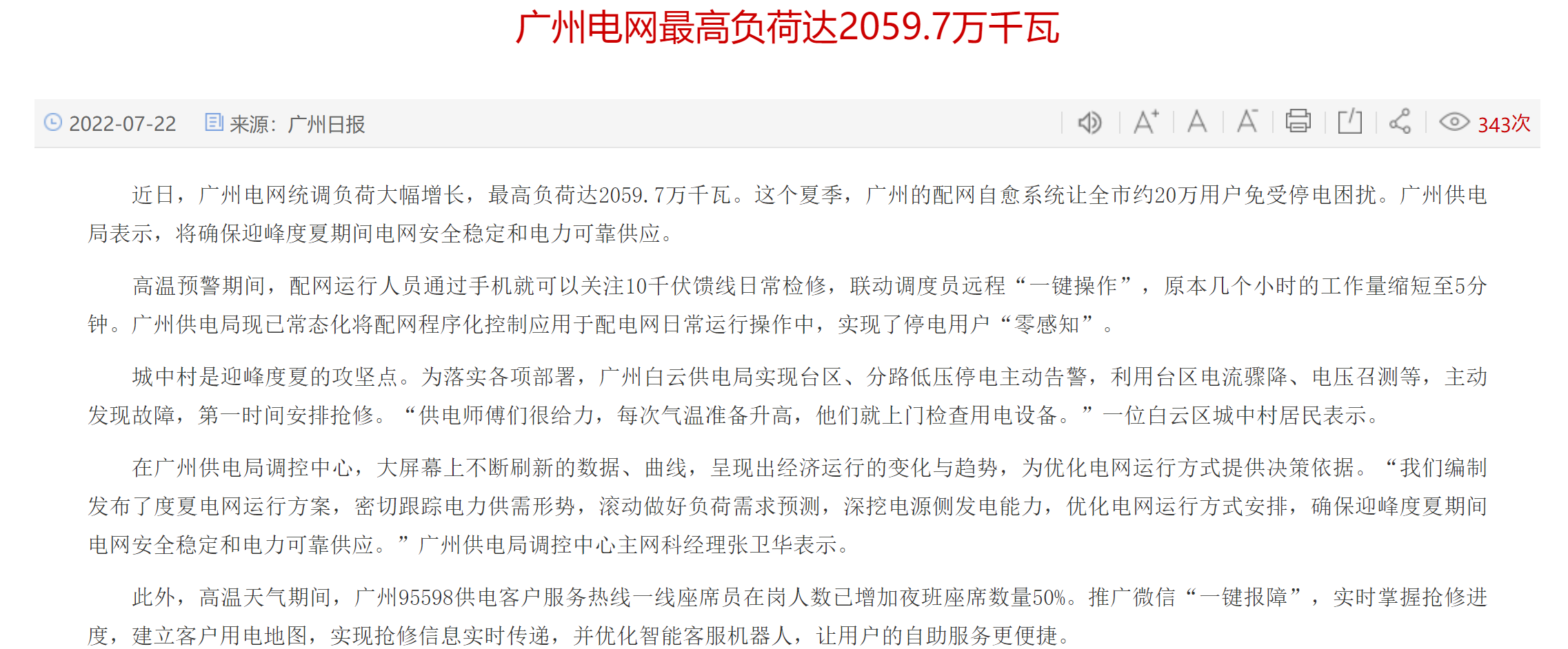 以广州市为例,2022年夏天全市电网最高负载2059.7万kW(数据来源:广州日报)。假设此时有1万辆充电功率达到500kW的汽车同时充电,将给电网负载增加500万kW压力,相当于最高负载的四分之一。