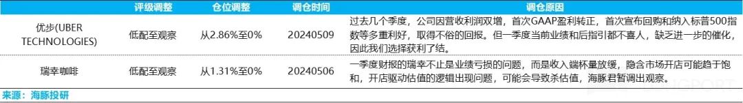 上周主要是调出了 Uber 和瑞幸,具体原因如下: