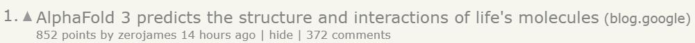 DeepMind新发布的AlphaFold 3是科技圈今天的绝对大热门,成为了Hacker News等许多科技媒体的头版头条。