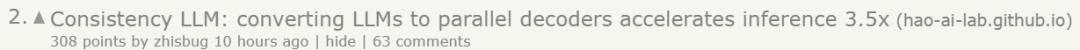 Hacker News热榜上紧随其后的则是今年2月发布的论文「一致性大语言模型」。