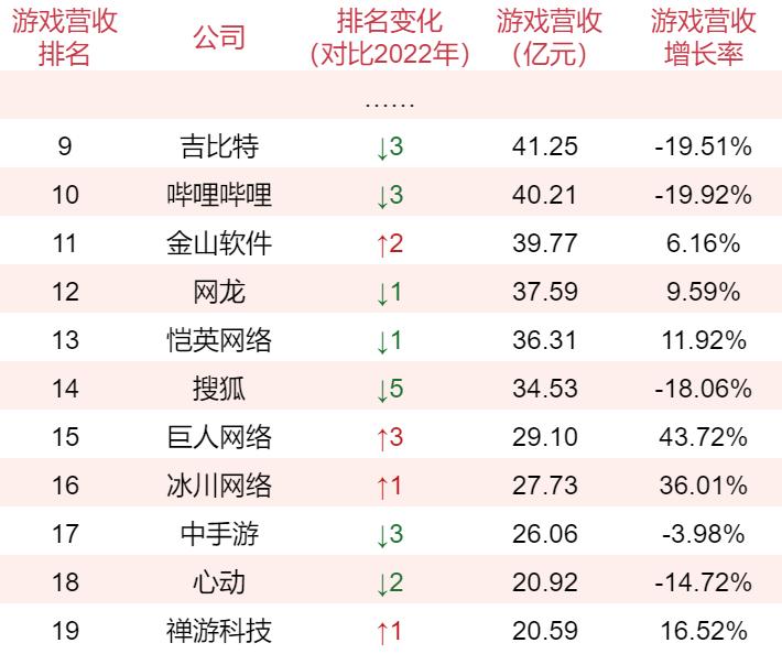 紧随其后,有11家公司游戏收入也超过了20亿,使得收入在20亿以上的公司总数来到了19家,比去年多了1家。