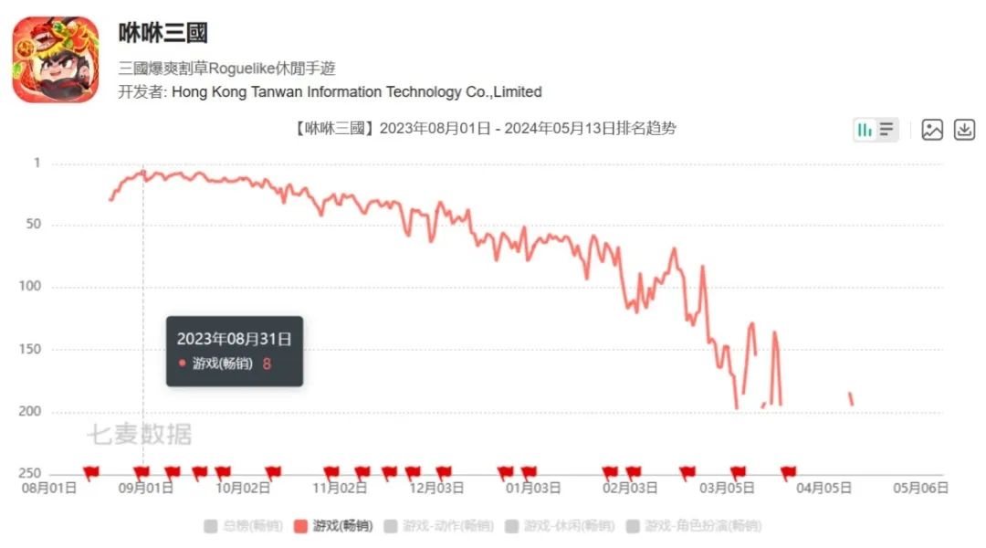 中旭未来财报中显示的海外收入全部来自香港。这或许与统计方式有关,事实上本期公司的《咻咻三国》在港澳台市场拿出了不错的前期表现,同时《MU:无限金蛋(MU: Trứng Vàng Vô Hạn)》在东南亚市场也大爆了一回,尤其是在越南市场曾霸占iOS畅销榜前排长达三个月。
