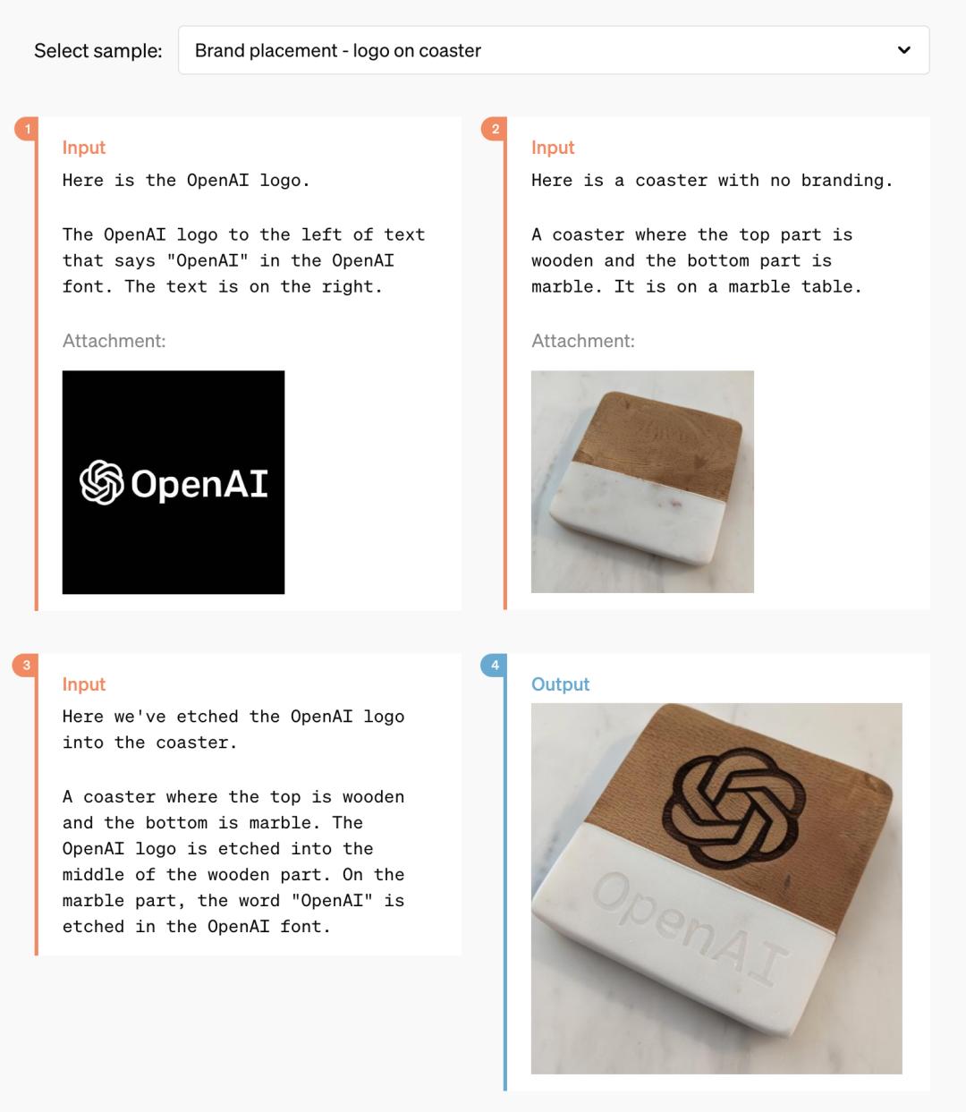 比如,你可以让它帮忙把 OpenAI 的 logo 印到杯垫上: