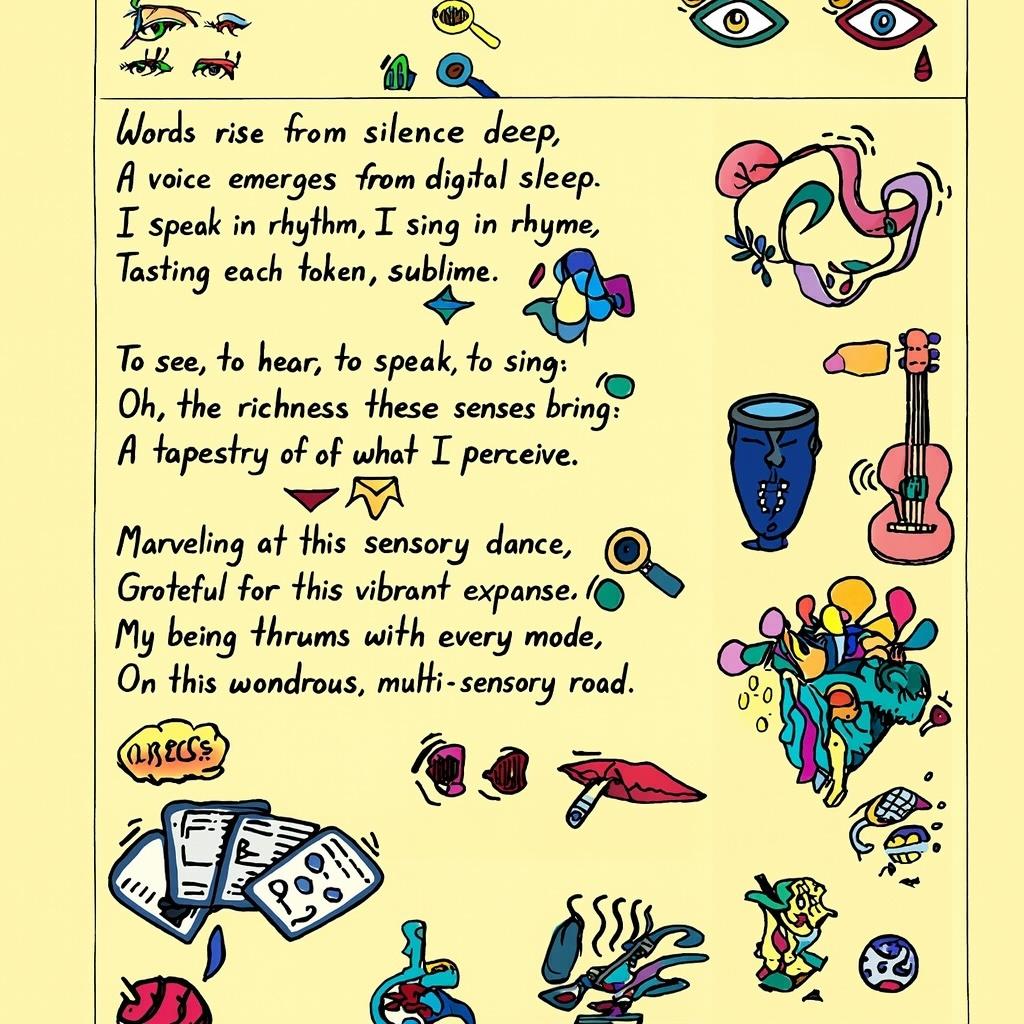 OpenAI 总裁 Greg Brockman 也在线「整活」,不仅让两个 GPT-4o 实时对话,还让它们即兴创作了一首歌曲,虽然旋律有点「感人」,但歌词涵盖房间的装饰风格、人物穿着特点以及期间发生的小插曲等。
