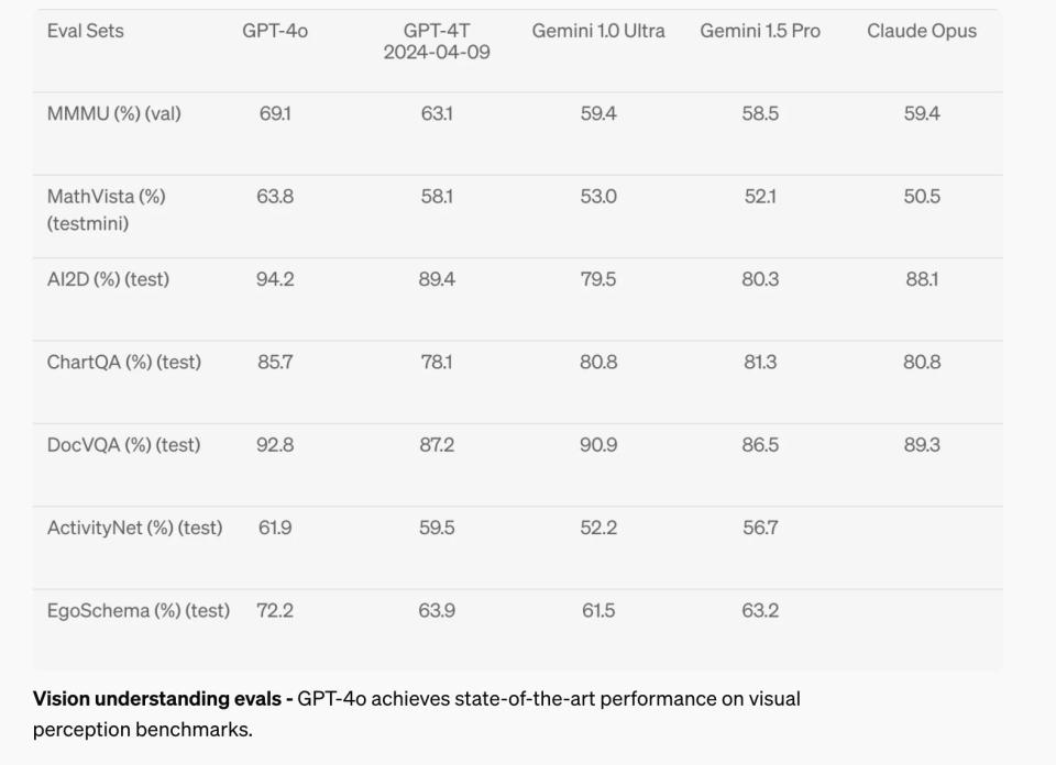 在多项基准测试上,分数都有提高,在视觉理解的测试上,GPT-4o达到新的高水准