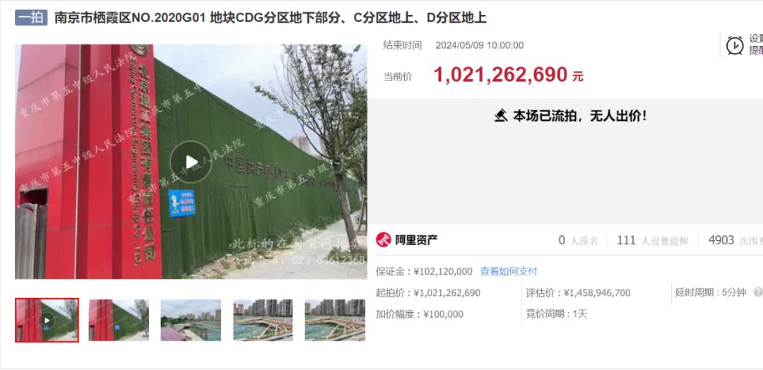 根据拍卖详情显示,该标的正是宝能于南京市栖霞区NO.2020G01地块的在建工程房地产项目——南京宝能金融中心,项目评估价14.58亿元,起拍价约10.21亿元,4903人次围观,无人出价。