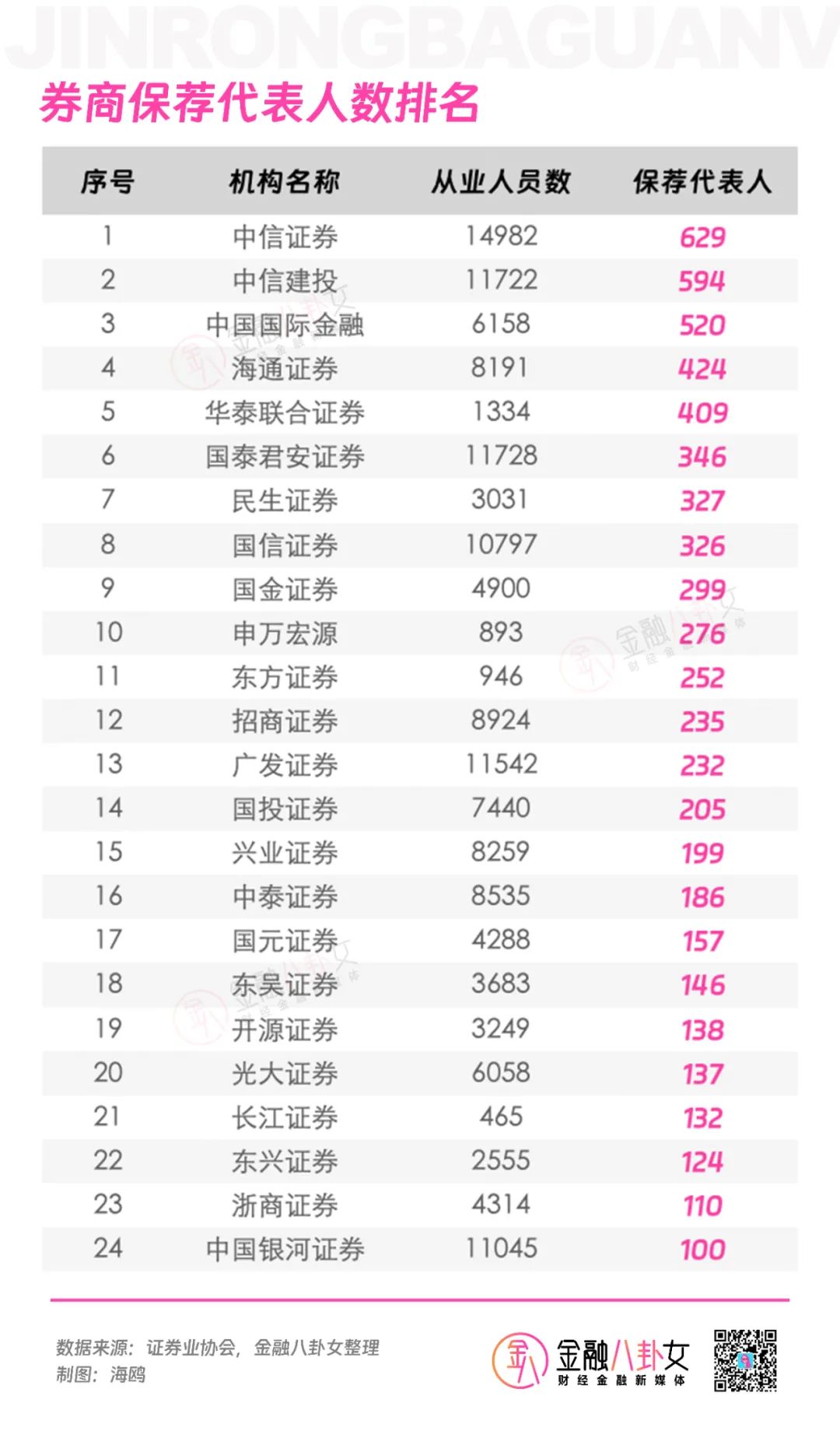 这不,前五名还是三中一华加海通,中信证券依旧有六百多名保代。