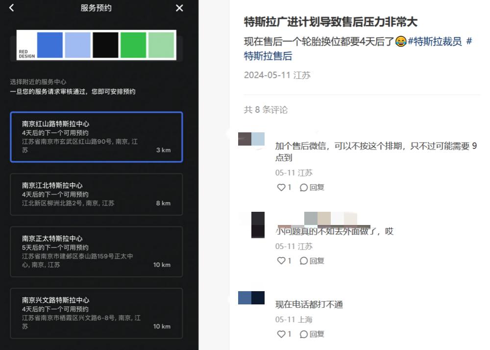 售后方面是重灾区,有东莞员工留言表示,东莞400客服人员都被裁。并且有上海车主拨打售后电话时发现,拨打400电话一直都在排队。