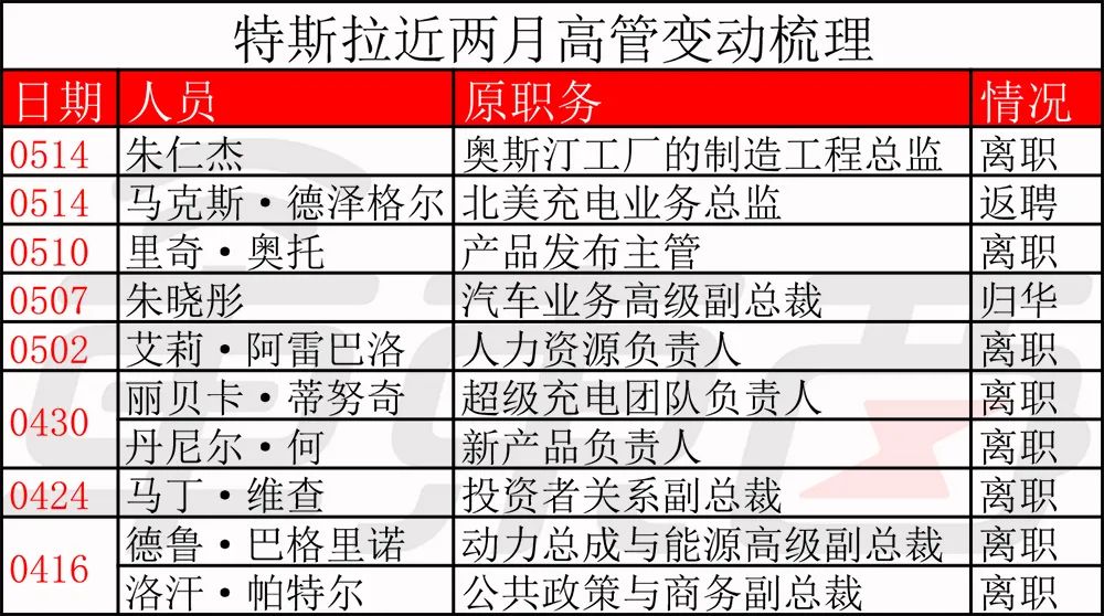 ▲近一月内特斯拉已有8名高管离职,2位高管职位变动