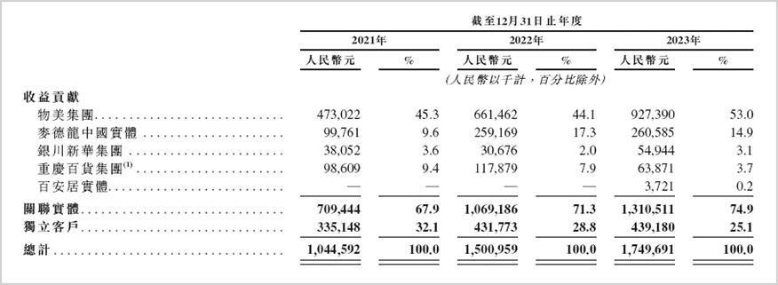 2021-2023年期间,多点来自关联客户的收入从7.09亿增加到了13.1亿,占营收比重从67.9%提升至74.9%。