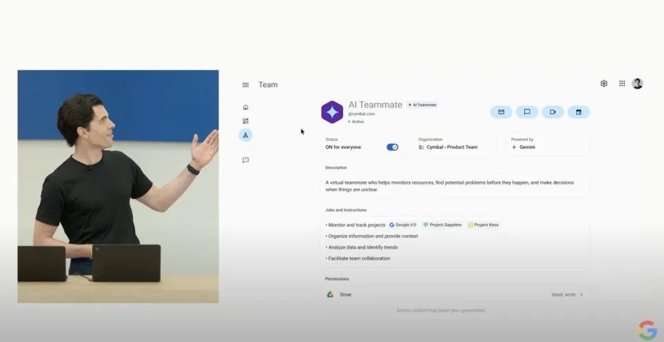 Gems登场的时候真的有点尴尬,全场鸦雀无声,因为大家一听介绍就明白了这就是谷歌的GPTs,还是慢了半年的版本。用户可以创建一个定制化Geminni。通过描述希望 Gem 做什么以及希望它如何回应,例如“你是我的跑步教练,给我一个每日跑步计划,并保持积极、乐观和激励的态度。”,Gemini 将根据这些指示进行增强,以创建一个符合您特定需求的 Gem。