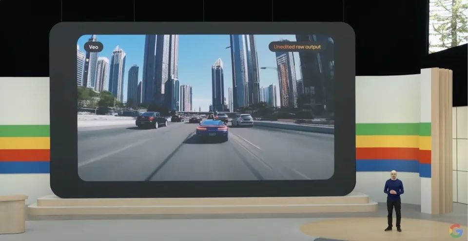 从质量上讲,谷歌的Veo和Sora足有一战之力。但是不得不说谷歌真的不太会演示。整个演示过程中,他们就放了一段汽车追逐的长生成视频,还不是全屏,看不清细节。其他的都是小片段,小画幅,细节模糊。震撼力大打折扣。