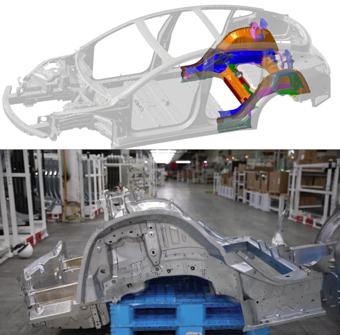 特斯拉官方就曾经“大大方方”地展示过一套Model Y采用压铸方式生产的后车身底板总成件,并与采用焊接工艺制作的Model 3同类部件进行对比。看过之后,只能说是令人深刻地领悟了什么叫“没有对比就没有伤害了”了。