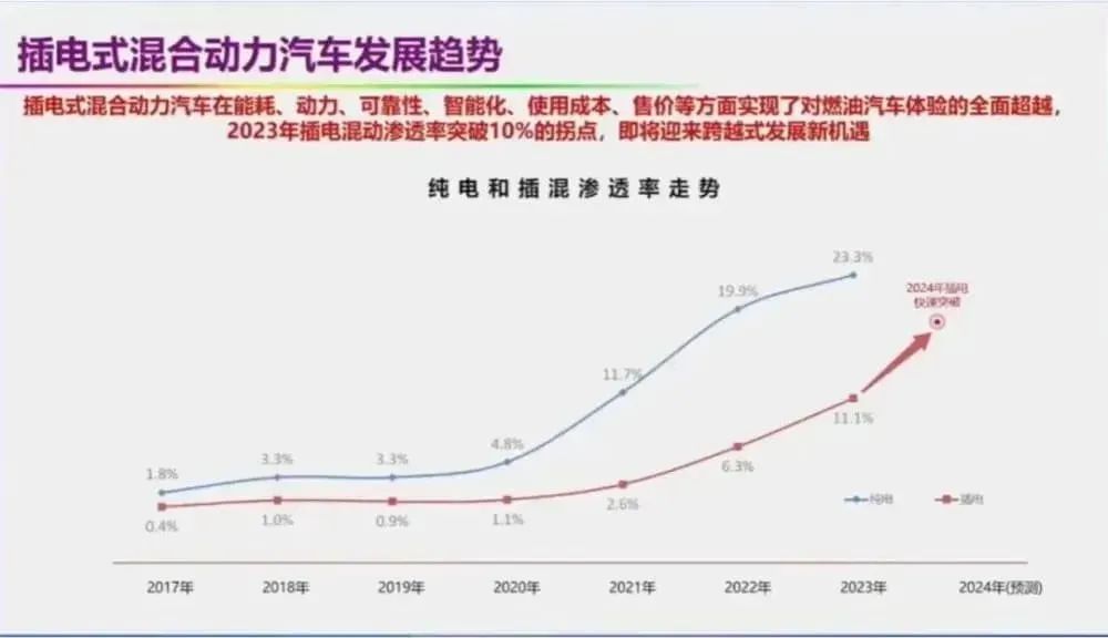 2023年到2024年,插混与增程式的高歌猛进,不仅直接取代了纯油车,也淹没了油电混动的声量,黯淡了纯电动的光芒。