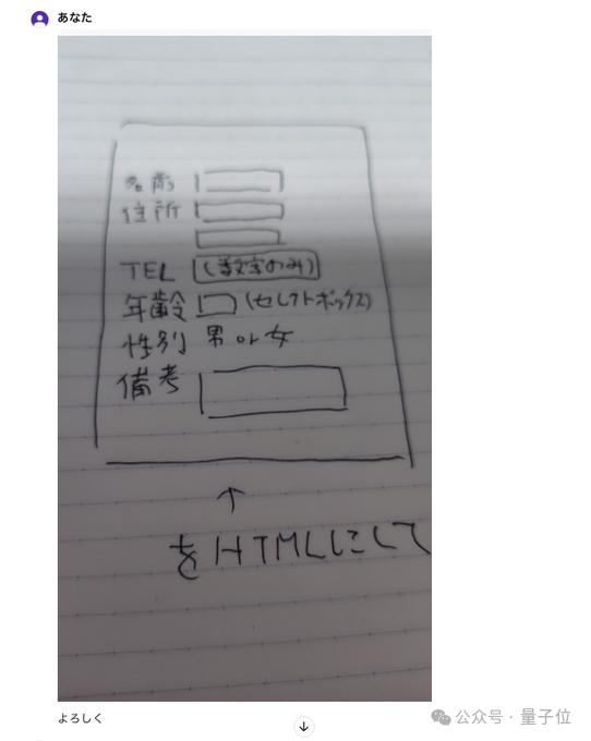 也有网友尝试利用GPT-4o,把写在纸上的原型转录为电脑内的初始HTML。