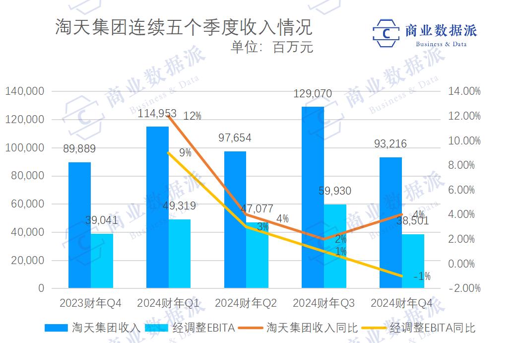 据财报显示,该季度淘天集团经调整EBITA为385.01亿元,同比下滑了1%,主要是由于为提高消费者留存率,并提升购买频次,以及科技基础设施的投入增加,部分被客户管理服务收入(CMR)增加所抵销。