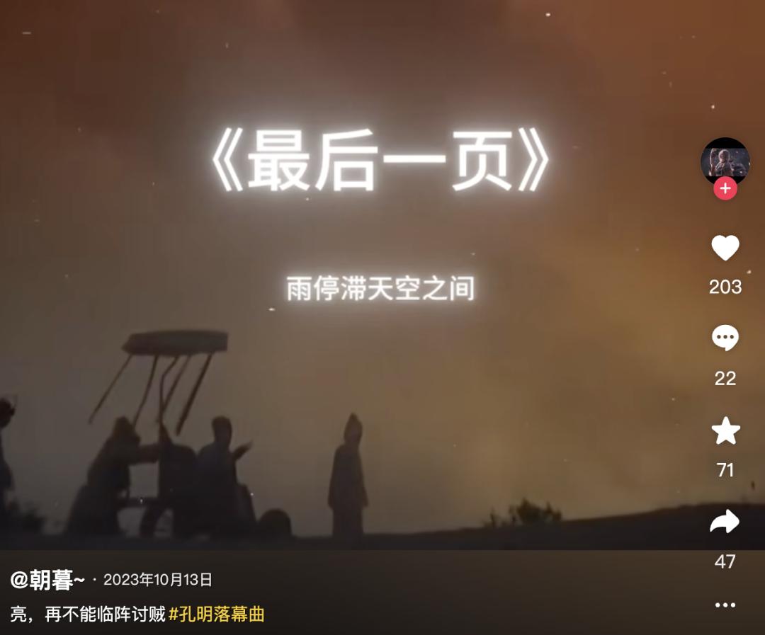 这首歌一开始和什么 “ 丞相 ” 没有半毛钱关系,直到某天,一位天才网友听到抒情伤感的《 最后一页 》后,决定把它当做自己诸葛亮混剪视频的 BGM 。