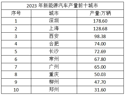 在2023年新能源汽车榜上,与前三强相比,随后的合肥、长沙、常州正在加速追赶。