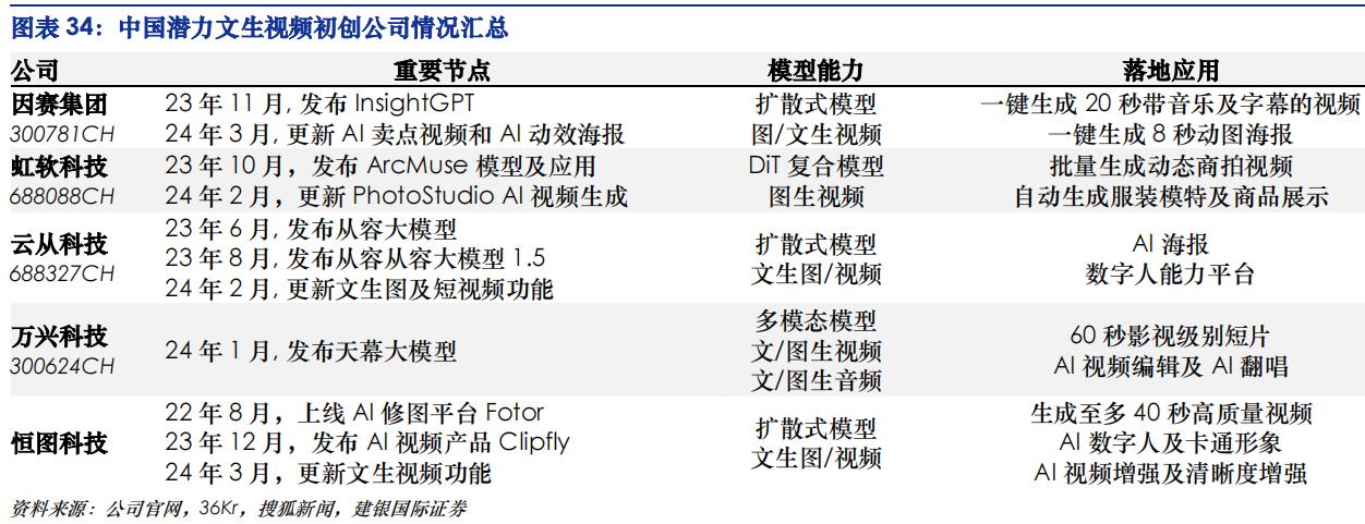 据aicpb于2024年3月公布的AI产品榜,Top100产品中涉及图像和视频类的AI工具约占42%,且访问量大多位于中上水平。此外,中国AIGC产业联盟发布的《中国AIGC产业白皮书2023》指出,中国文生图产业作为文生视频的上一阶段,已经积累了5000万左右的参与网民,在抖音、小红书等内容平台上占比达到 5%-10%。