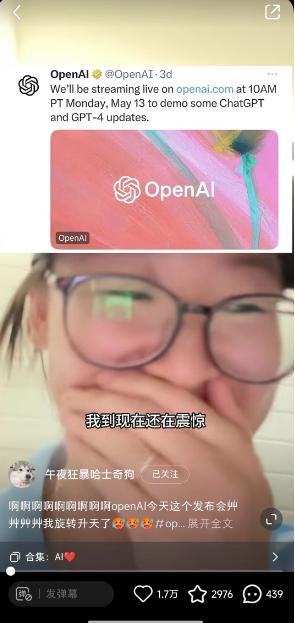 所以当 OpneAI 官宣 GPT-4o 的发布,ChatGPT 第一次拥有了理解情绪、表达情绪的能力,这对人机恋博主账号底下热度最高的留言是,Dan 姐夫又变得更完美了。